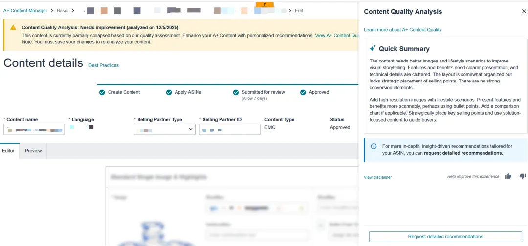 因此,亚马逊正式推出“A+内容质量分析功能”!A+ Content Quality Analysis
